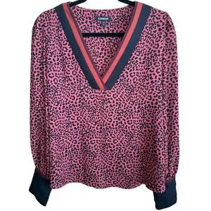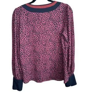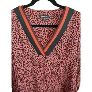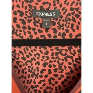 Express women’s maroon and black animal print blouse in size Small Petite (SP). Long sleeve, button sleeve design and bold animal print. Lightweight feel, sheer, dressy blouse.