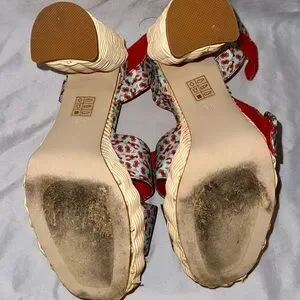 Unique Jeffrey Campbell Amma lobster wedges size 9.5. Has a super fun aqua and red lobster print with cool woven platform heels. Red insoles and velcro straps. Comes with original box.