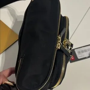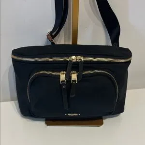 Tumi Madison Black Nylon Belt Bag with Gold Hardware Accents