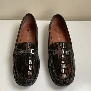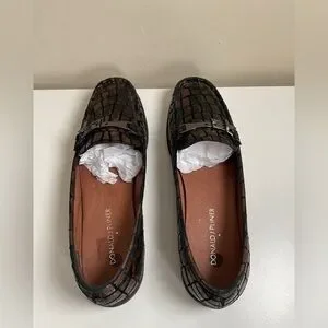 Donald J Pliner Croc Embossed Leather Loafers Women 7M Brown Slip On