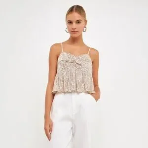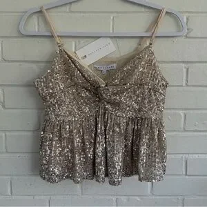 Endless Rose Cream Sequins Tank Top, SZ M NWT