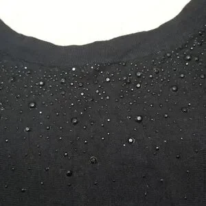 rhinestone embellished scoop neckline that Cascades halfway down
