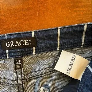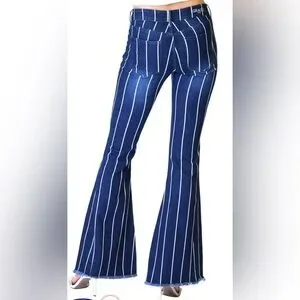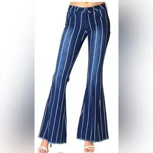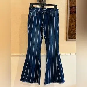 Flare/ bootcut/ bell bottom jeans w/ frayed hem striped Mid rise. Grace in LA 28
