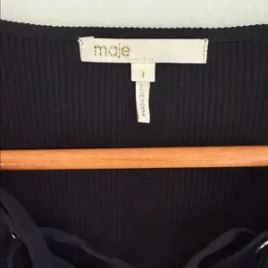 Maje Black Lace-Up Ribbed Long Sleeve Top
