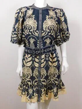 FARM RIO Ainika Tropical Splendor Blue Mini Dress L (32926)