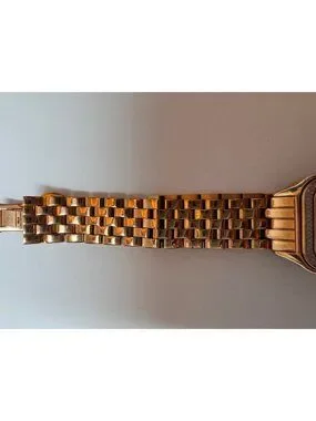 Condition: Pre-owned with visible surface scratches on caseback and normal wear to bracelet and finish consistent with use. Crystal appears clean and dial presents beautifully.