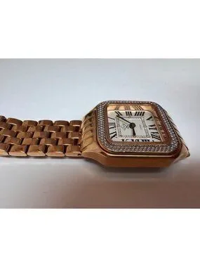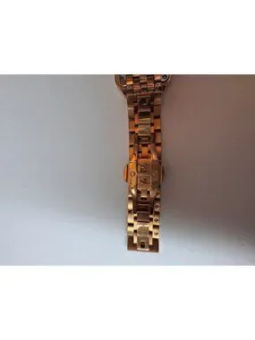 Elegant GV2 by Gevril “Milan” model 12101 Swiss quartz wristwatch in rose gold tone stainless steel. Features a diamond-accented bezel and dial, blue crystal, and classic Roman numeral face. Finished with a cabochon crown and substantial link bracelet.