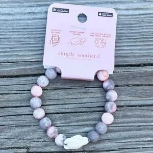 Simply Southern tracker bracelet with pink and gray beads, featuring a white turtle charm bracelet.