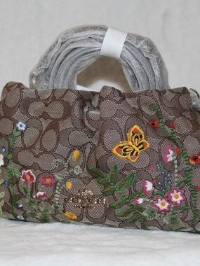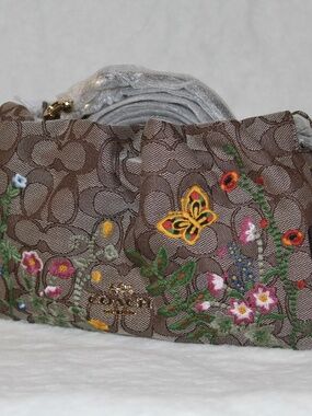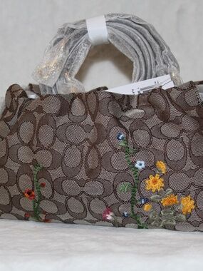 NWT Coach Faye Signature Jacquard With Floral Embroidery