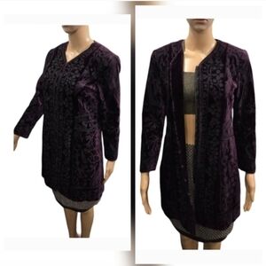 Elie Tahari Purple Velvet Embroidered Clasp-Up Jacket Size S