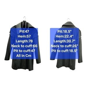 Design: Double-breasted front with a unique "trompe l'oeil" layered cape overlay.