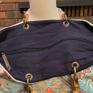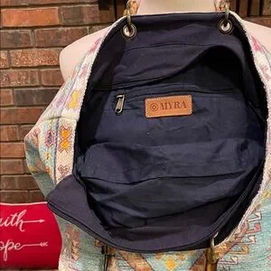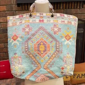 Stylish tote with geometric patterns. Features vibrant colors. Perfect for daily use.