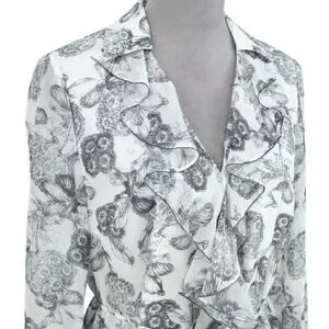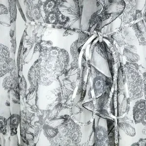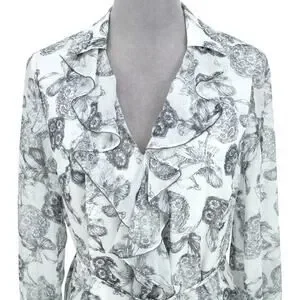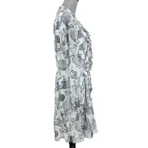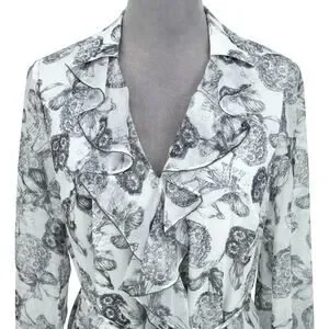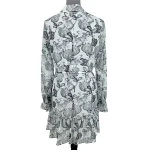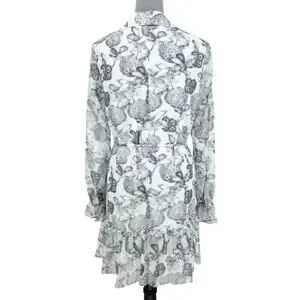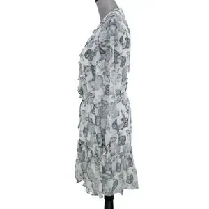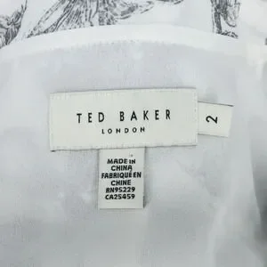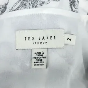 Ted Baker 2 Dress Womens 6 White Black Floral Ruffles Chiffon Tie Waist Lined