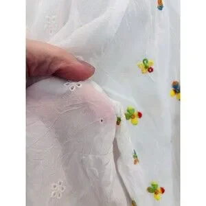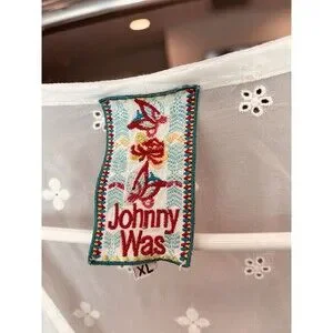 Johnny Was Eyelet Sheer Floral Flower Embroidered Long Sleeve Tunic Blouse Sz XL