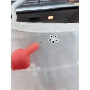 *** please see pic for two pinholes in shirt. One is under an armpit and the other one is at the neck in the back. Theyre very small. I had a hard time taking their pictures. they do not take away from the beauty of the shirt.****