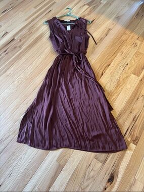 Elegant Sleeveless Silk Chocolate Brown Women’s Dress with Waist Tie