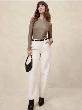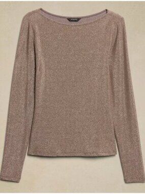 Banana Republic Gold Metallic Sparkle Boat-Neck Top Medium