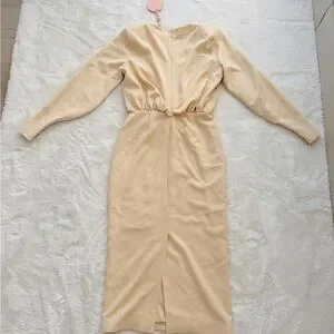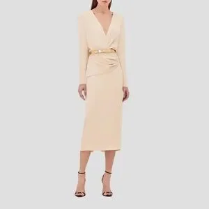 Expertly designed by Alexis, the Fraser Midi Dress boasts a deep V-neckline, flattering waist draping, and long sleeves for a refined and sculpted silhouette. Its sleek midi length adds a touch of elegance, perfect for any occasion.