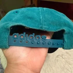 Vibrant turquoise Adidas cap. Features iconic logo inside.