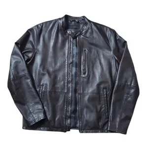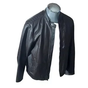 John Varvatos Lambskin | Leather Motorcycle | Ribbed Bomber Jacket | Cognac