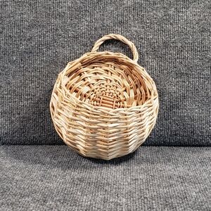 Vintage WICKER WALL BASKET Woven Hanging Planter 6.5" Garden Pocket Neutral
