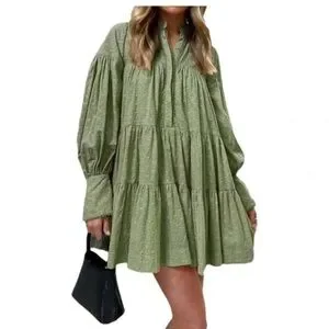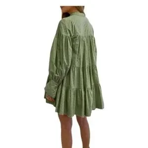 Women's Bohemian Floral Print Button Down Long Lantern Sleeve Shift Tunic Dress Casual Ruffle Swing Mini Dress