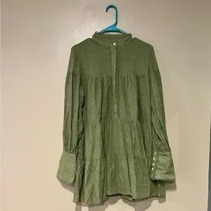 Women's Bohemian Floral Print Button Down Long Lantern Sleeve Shift Tunic Dress