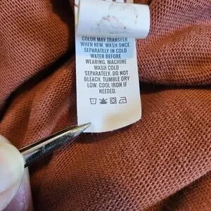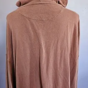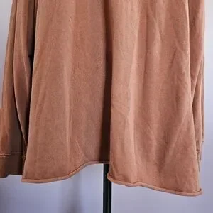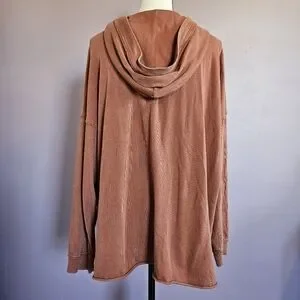 Soft lace-up hooded pullover in a warm rust color. Lightweight, relaxed fit with long sleeves and drawstring hood. Versatile layering piece that pairs easily with jeans or leggings.