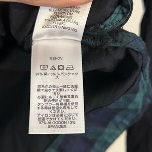 black Vineyard Vines Popover Blouse with a ruffled neckline and a green and black plaid pattern on the inner hem