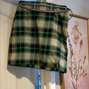 River Island plaid skirt in bold green, black and cream checks. A-line silhouette with classic tartan pattern. Easy to style for casual or smart looks.