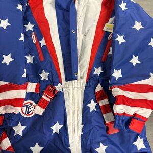 Tipsy Elves Ski Suit Mens L American Flag USA Stars Stripes One Piece Snow Suit