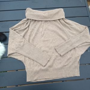 Halston Oatmeal/Tan Sweater, Size Medium, Wide Cowl Neck or Off the Shou…