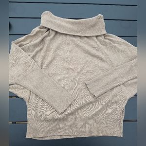 I'm not sure if this is just a large cowl neck or off the shoulder sweater. Size medium oatmeal / tan Halston sweater, size medium. Gently used condition. Unfortunately the material tag has been removed.
