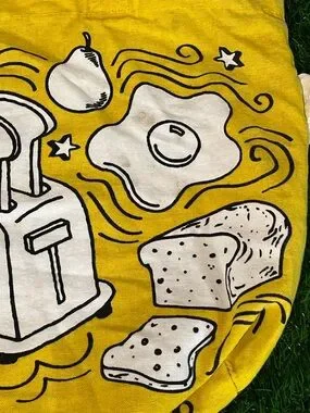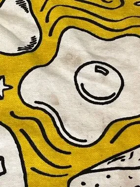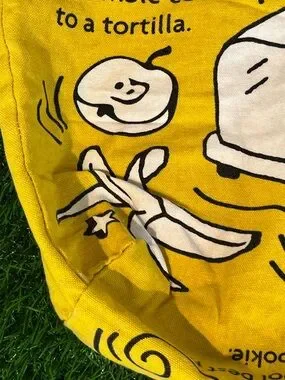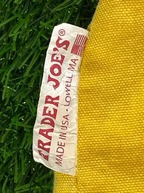 The Trader Joe's Breakfast Waffle Toast Milk Jam Shopping Reusable Grocery Eco Bag is a VINTAGE AUTHENTIC reusable shopping bag featuring a distinctive all-over pattern in yellow. Made of durable canvas material, this small-sized bag is perfect for eco-friendly shopping trips. With its pop art style and foldable design, this original piece from Trader Joe's is a unique addition to any household's collection. Perfect for general household supplies, this reusable shopping bag is a must-have for those looking to reduce waste and shop sustainably.