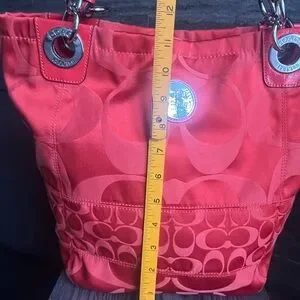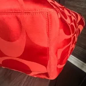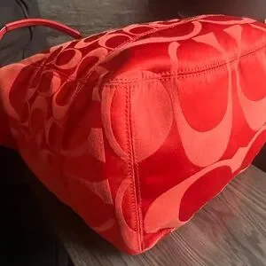Coach Crimson Orange Signature Nylon ToteBag Leather Trim/Hangtag + Dust Bag 12”