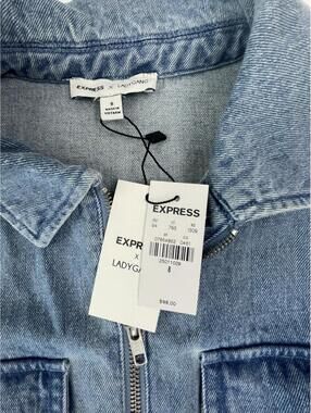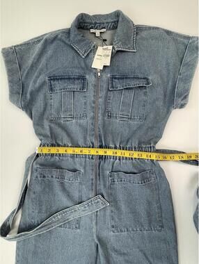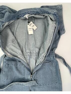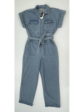 NWT Express X LADYGANG Women’s Blue Denim Zip Front Belted Jumpsuit Size 8