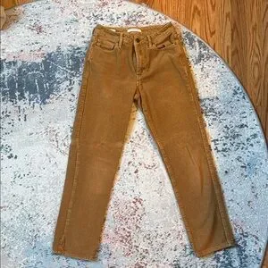Slim straight fit “mom jean” with a corduroy texture. Classic five-pocket styling. Warm tan color for seasonal looks. Easy to pair with sweaters or tees. Smoke free home. Only worn once, too small for me!