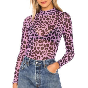LOVERS & FRIENDS Lauryn top animal print mesh purple leopard size XXS