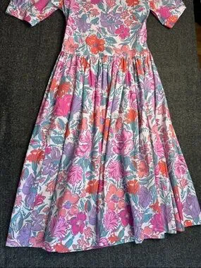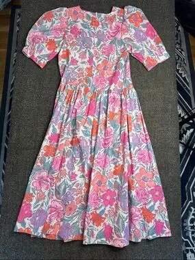 Vintage Laura Ashley Floral Puff-Sleeve Midi Dress Pink & Lavender sz 8 80s 90s