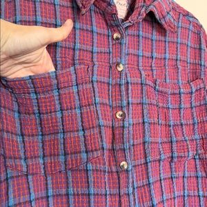 We The Free by Free People M Multicolor Plaid Shirt — Purple & Blue Accents