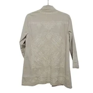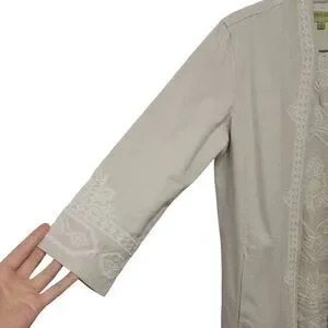 A cute open front embroidered canvas cardigan jacket by Sigrid Olsen in size small.