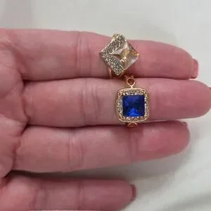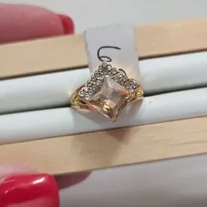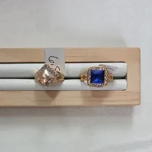 Women’s Lot of 2 Fashion Rings Gold Tone Blue & Peach Crystal Rings Rhinestones Elegant