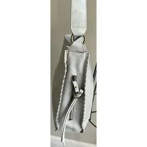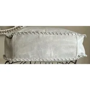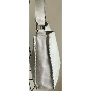 Hobo Braided Leather Shoulder Handbag With Whipstitch Detailing Light Grey EUC