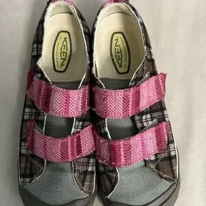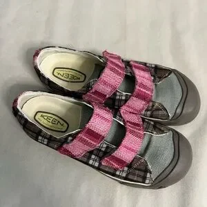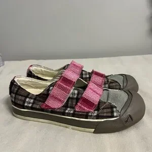 🌲 KEEN Coronado II Mary Jane Plaid Sneakers Pink Brown Canvas Size 10 Comfort