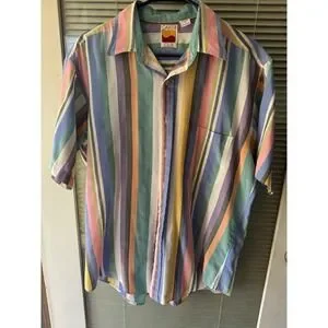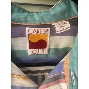 Vintage 90's Striped Career Club Shirt Collared Colorful Size L