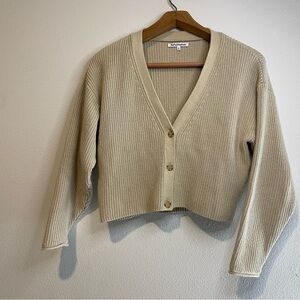 Reformation Jessa Chic Cardigan Sweater Knit Ribbed 100% Cotton Cream sz M