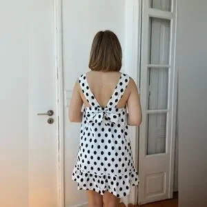 New! Sézane Mathilde Black & White Polka Dot Mini Dress 🖤Size 38 US 6