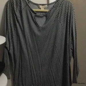 Women's Black and White Patterned V-Neck Top