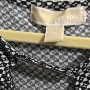 Comfortable women's V-neck top in a black and white patterned knit. Lightweight, drapey fabric for all-day wear. Versatile style that pairs easily with jeans or trousers. Machine-washable for easy care.