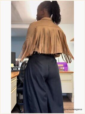 Faux Suede Leather Cropped Jacket with Fringe Tassel Sleeves Lined